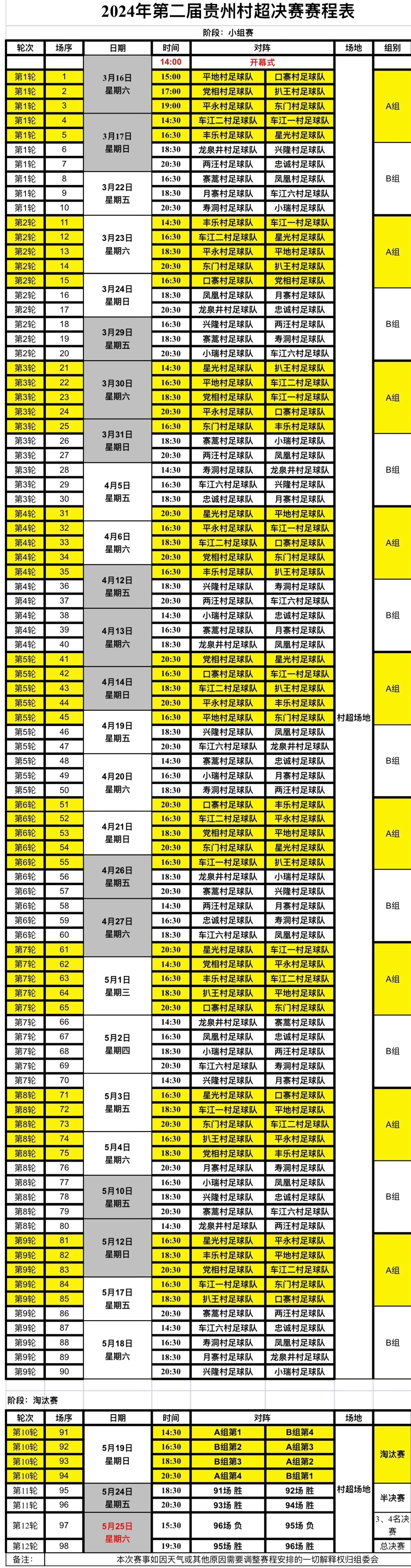 赛程表出炉!2024贵州“村超”决赛3月16日开赛
