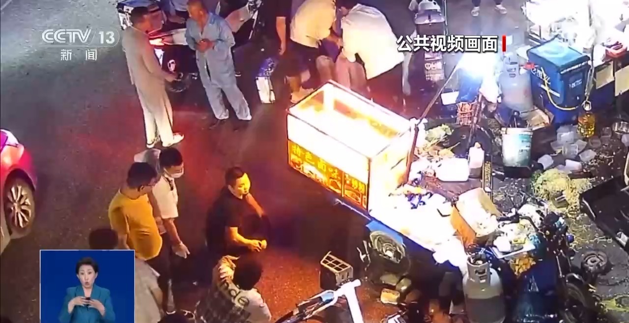上海市公安局奉贤分局网安支队民警 王嘉伟:事故发生以后,小轿车的车主主动与摊贩和受伤骑车人进行协商,全程并未发生矛盾纠纷以及所谓互砍的行为。