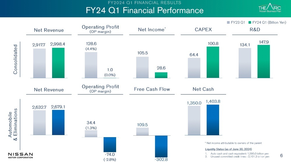 7月25日,日产汽车公司公布了并不好看的2024年第一财季(2024年4月1日至6月30日)业绩报告。
