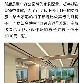与辉同行新办公室花了多少钱?知名博主透露,光椅子就要5000多元一个。